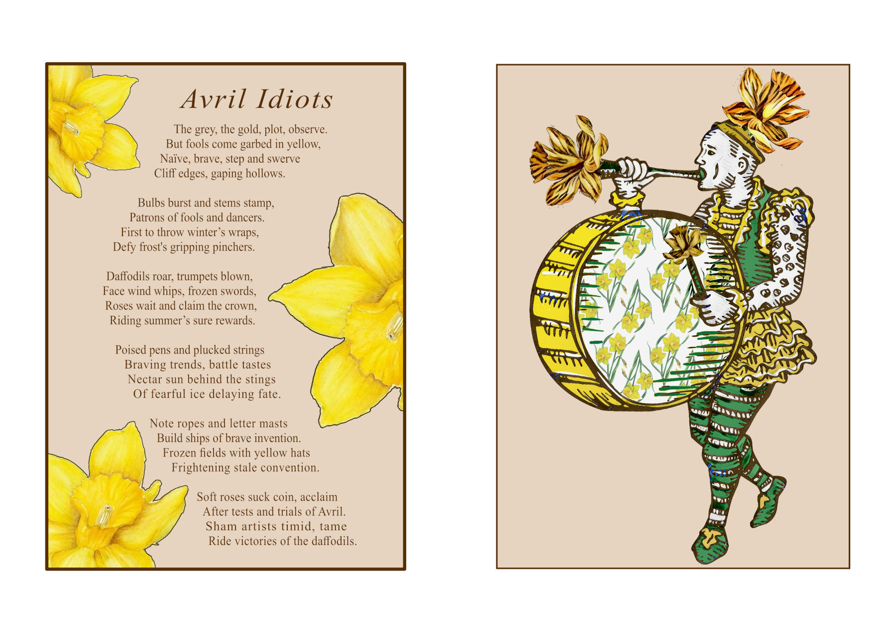 Daffodils roar, trumpets blown,