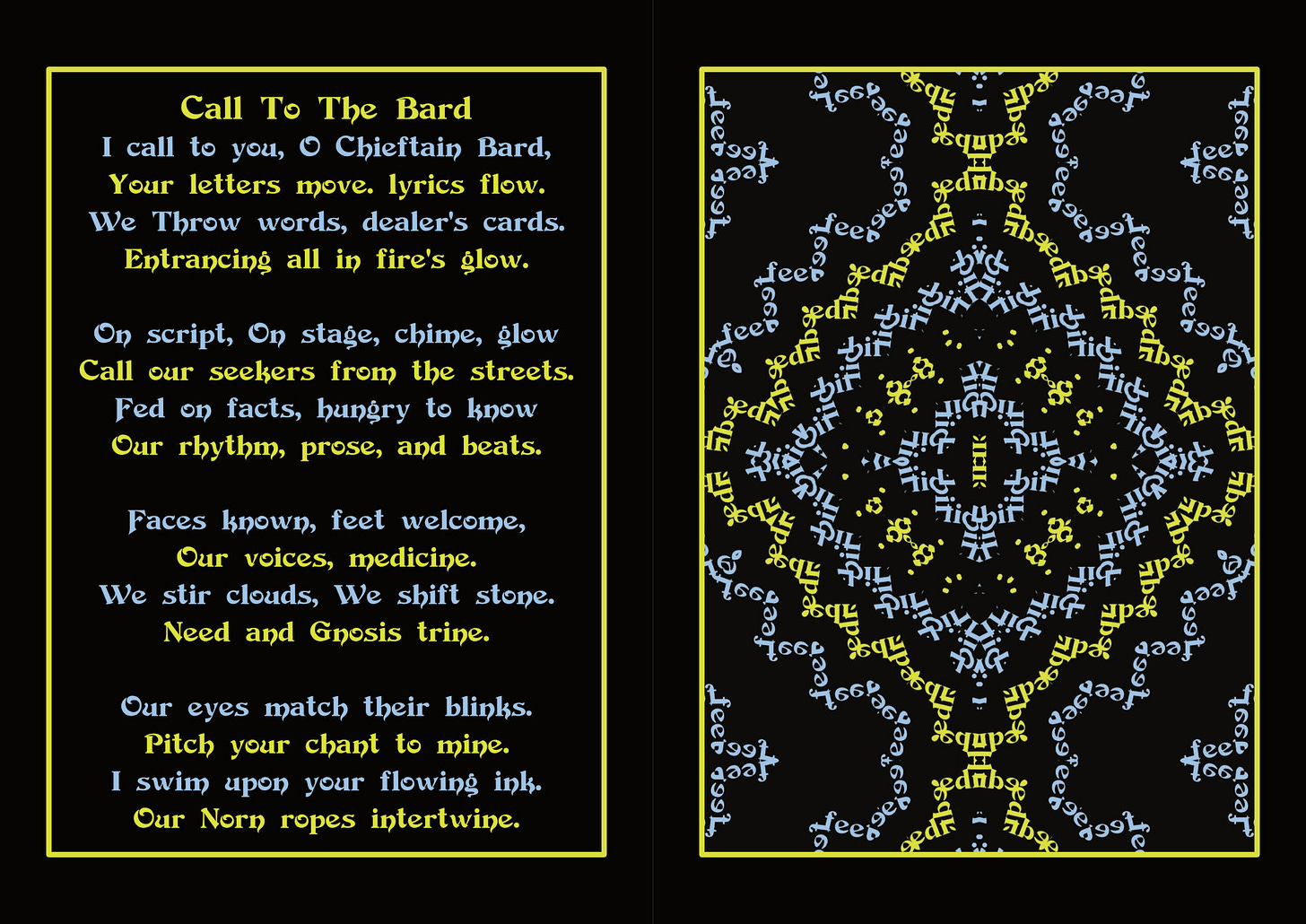This is the first part of my soon to be released Book "Chantry Circuitry". It is a series of poetic calls and incantations to Mystical and Archetypal figures. The Mandalas are meditation tools constructed from manipulated images of the poetry. Digital Release of the Full Book of Chantry Circuitry planned in time for Halloween!
