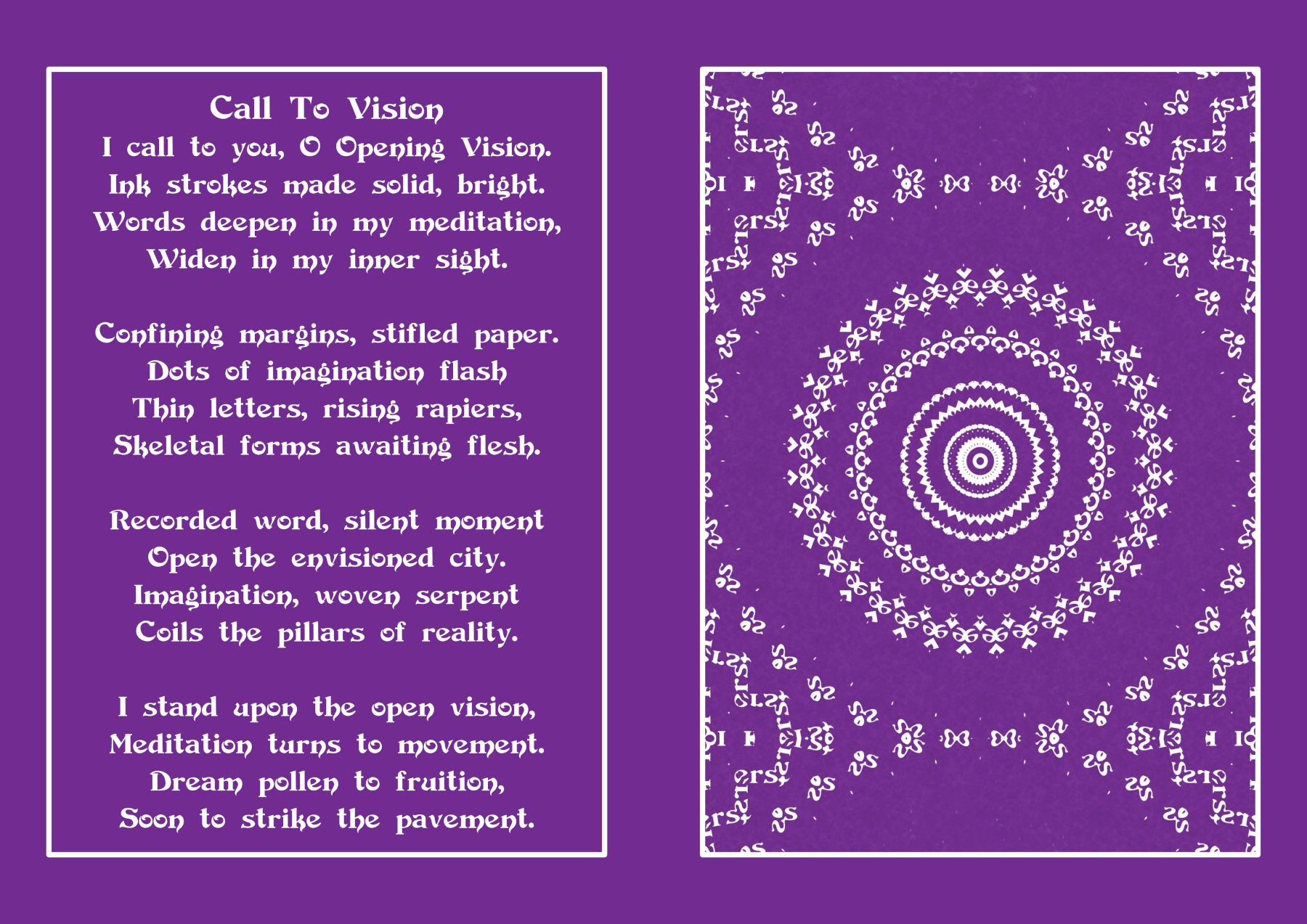 Another piece from my New Book "Chantry Circuitry". It is a series of poetic calls and incantations to Mystical and Archetypal figures. The Mandalas are meditation tools constructed from manipulated images of the poetry.