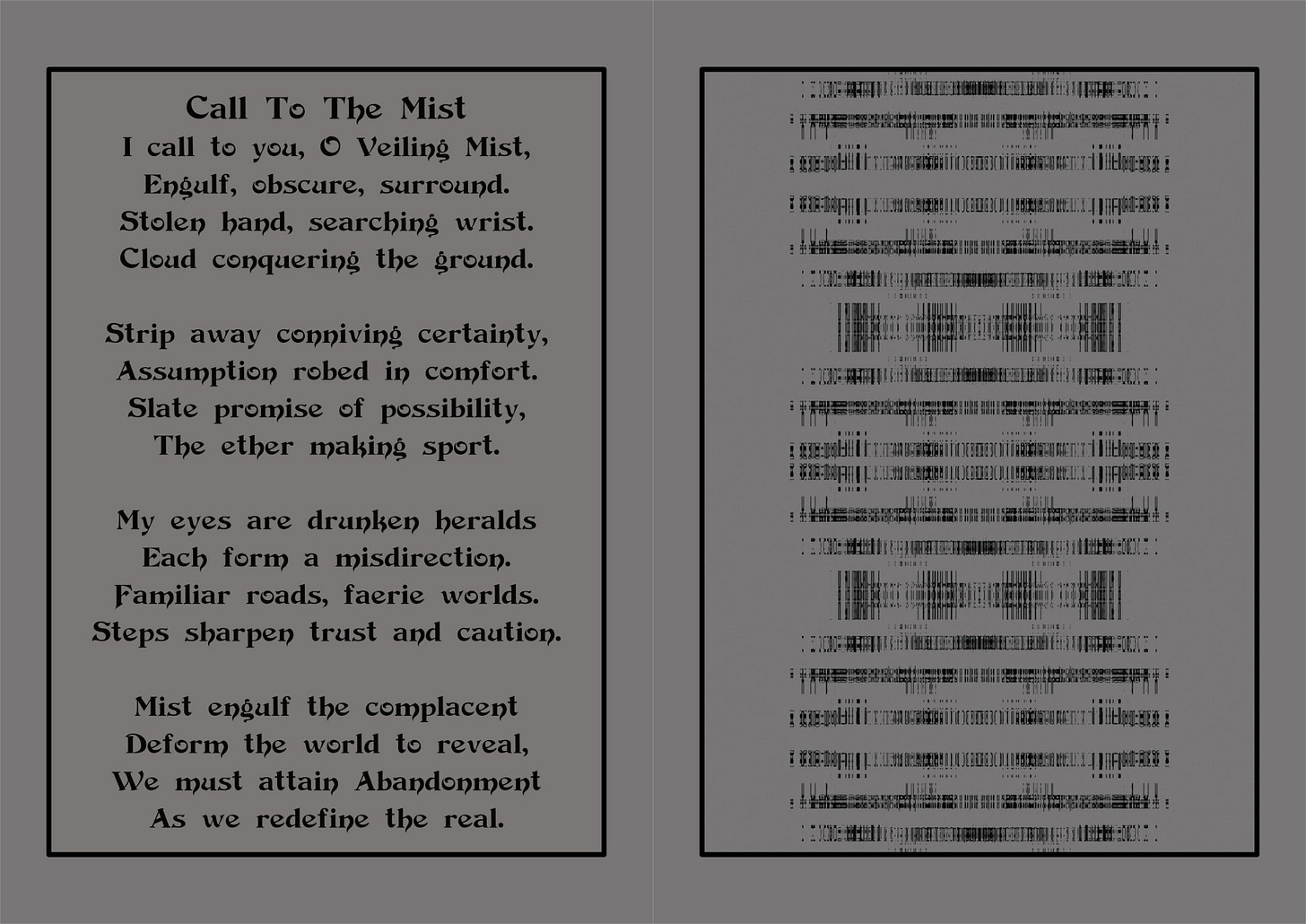 I call to you, O Veiling Mist,