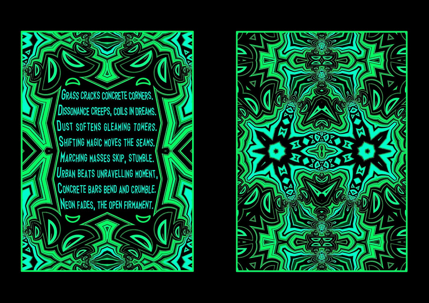 An excerpt from my new book "Chaos Charms". Available Now! (https://www.graememcallister.com/p/chaos-charms-book) Grass cracks the concrete corners, cities bend under spirits... Other parts of the story are available - https://www.graememcallister.com/t/chaos-charms Urban Beats Unravelling Moment Grass cracks concrete corners. Dissonance creeps, coils in dreams. Dust softens gleaming towers. Shifting magic moves the seams. Marching masses skip, stumble. Urban beats unravelling moment, Concrete bars bend and crumble. Neon fades, the open firmament.