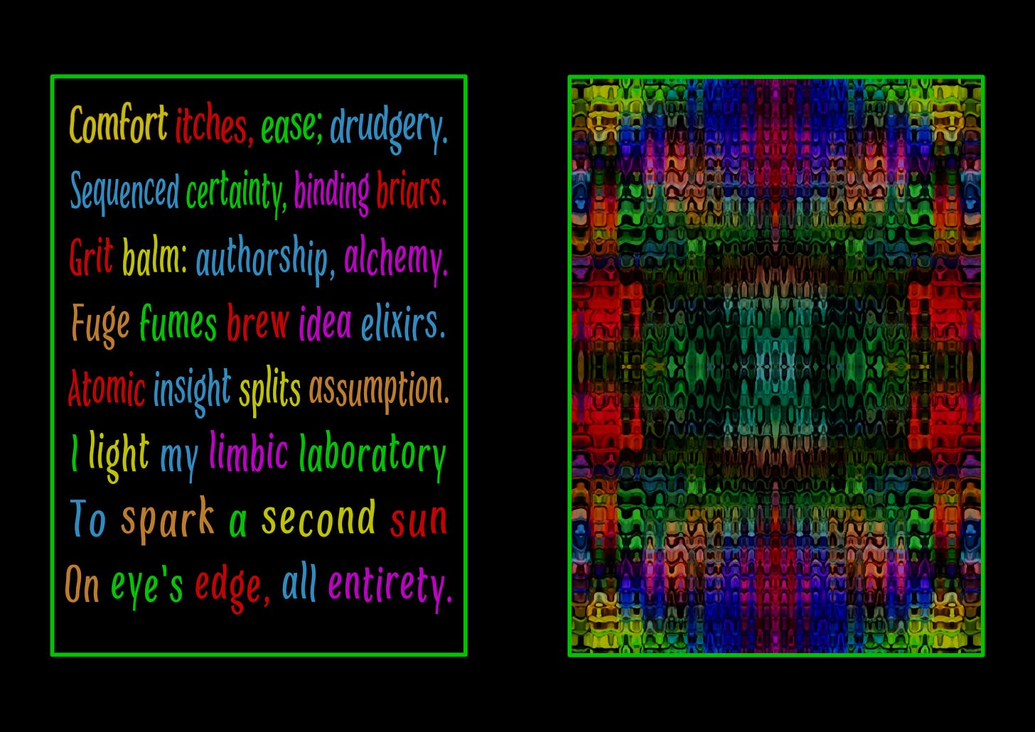 An excerpt from my new book "Chaos Charms". Available Now! (https://www.graememcallister.com/p/chaos-charms-book). Other parts of the story are available - https://www.graememcallister.com/t/chaos-charms Limbic Laboratory Comfort itches, ease; drudgery. Sequenced certainty, binding briars. Grit balm: authorship, alchemy. Fugue fumes brew idea elixirs. Atomic insight splits assumption. I light my limbic laboratory To spark a second sun On eye’s edge, all entirety.